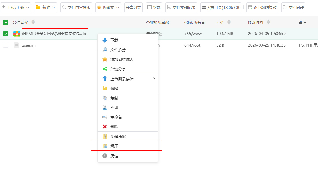 1.下载网站端安装包 将安装包上传到你的服务器网站更目录,并解压(解压密码进入QQ群4489804,看群公告获得);